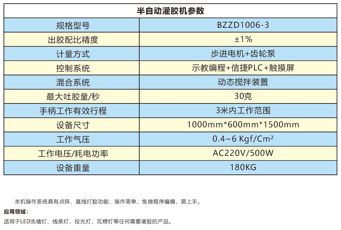 ▲工作效率:不同产品及胶量不同,如洗墙灯产品可以达到2500PCS/8H;